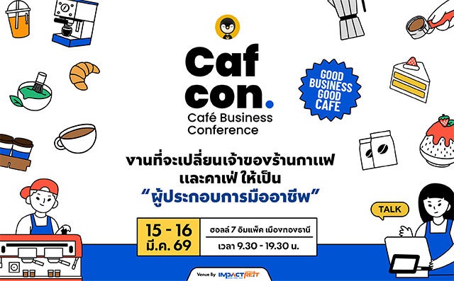 15-16 มีนาคม 2026 นี้ Torpenguin ชวนอัปเดตทุกเรื่อง ‘ธุรกิจ’ ในวงการคาเฟ่ และร้านกาแฟ ที่ Caf Con – Cafe Business